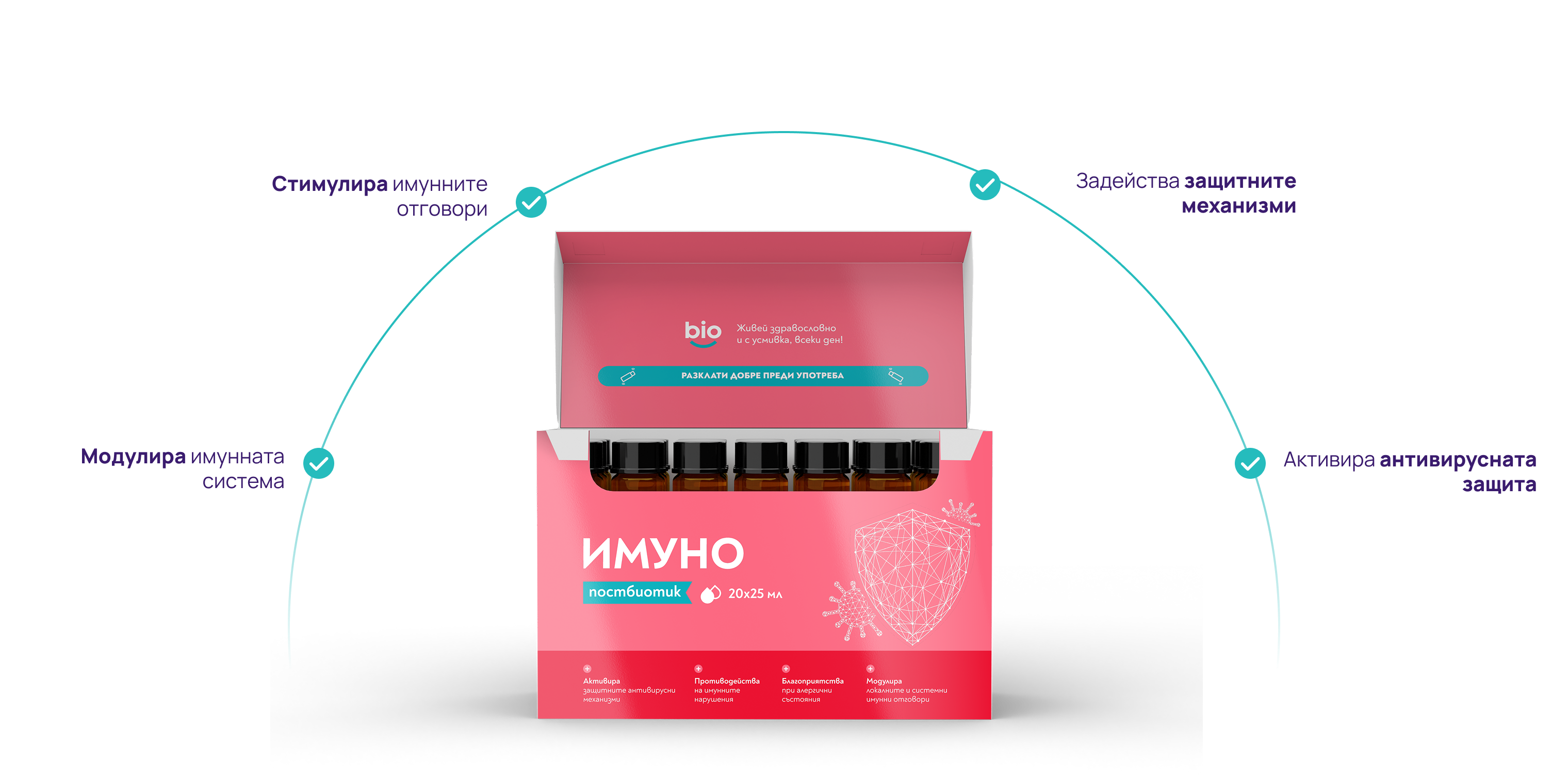 Предлагаме Ви готово решение в борбата с вирусите и имунологичните проблеми. И то е използването на постбиотика „Bibiotic® Имуно“.  Не разчитайте на принципа: „На мен няма да се случи!“. Грижете се своевременно за здравето си.